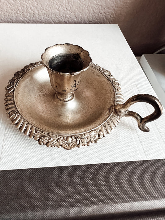 VINTAGE RETRO SOLID BRASS CANDLE HOLDER WITH HANDLE